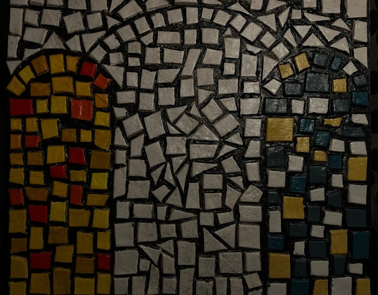 I was in Aotearoa (New Zealand) when I made the mosaic for the cover of TMFL. That trip to Aotearoa was the first time in my life I ever felt truly safe and secure. The mosaic took some hours in between watching F1, day trips to Kerikeri and to Auckland, and living without the expectation and confinement of my childhood.
